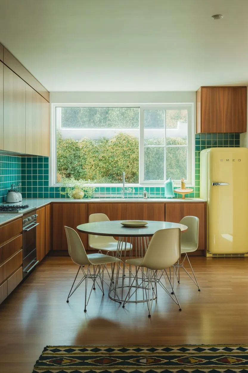 Mid-century kitchens donβt have to be all function. Add one cool piece of art β vintage poster, abstract print, or atomic starburst.