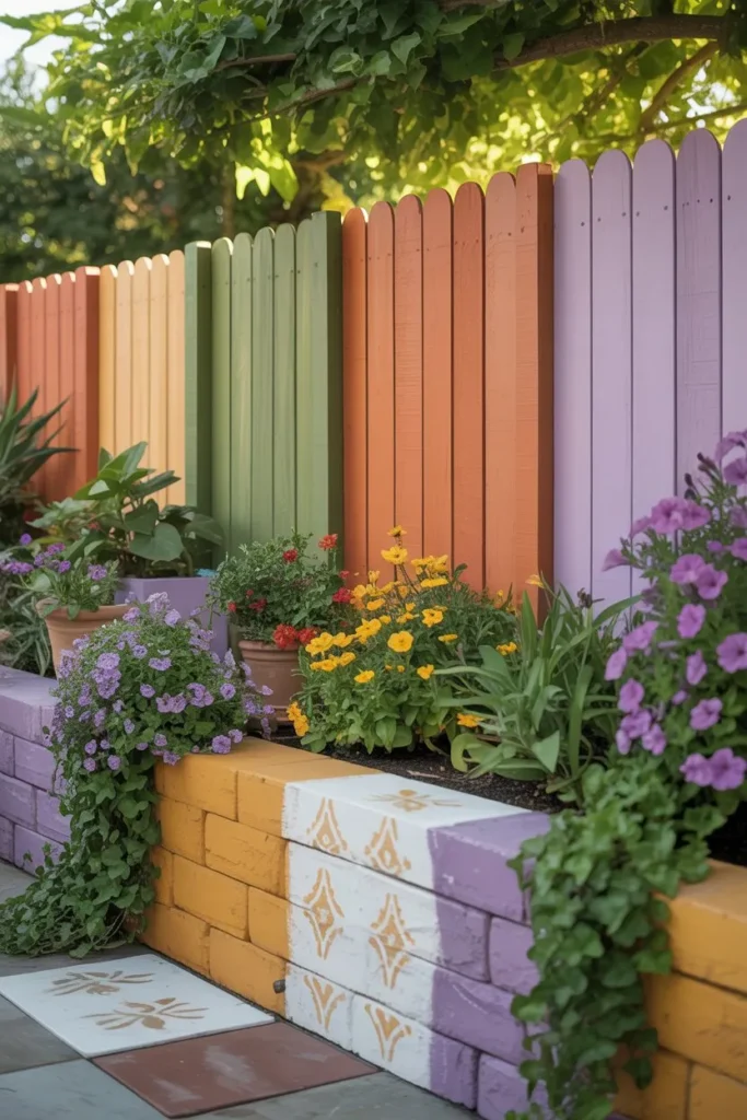 Ever seen a fence that appears to have been dipped in color? It’s a trendy way to give your garden a splash of retained joy without committing to a full paint job. Simply painting the bottom few feet of the fence in a bright, bold color while leaving the top natural or another hue can add a fun, modern twist to your outdoor space.