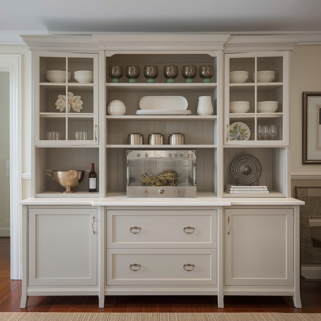 Now, this is where life gets fun! Imagine your kitchen buffet cabinet transformed into a chic bar station. It’s like your kitchen is having a happy hour… every hour. Whether you’re a cocktail connoisseur or just love pouring a glass of wine after a long day, having this dedicated space is life-changing.
