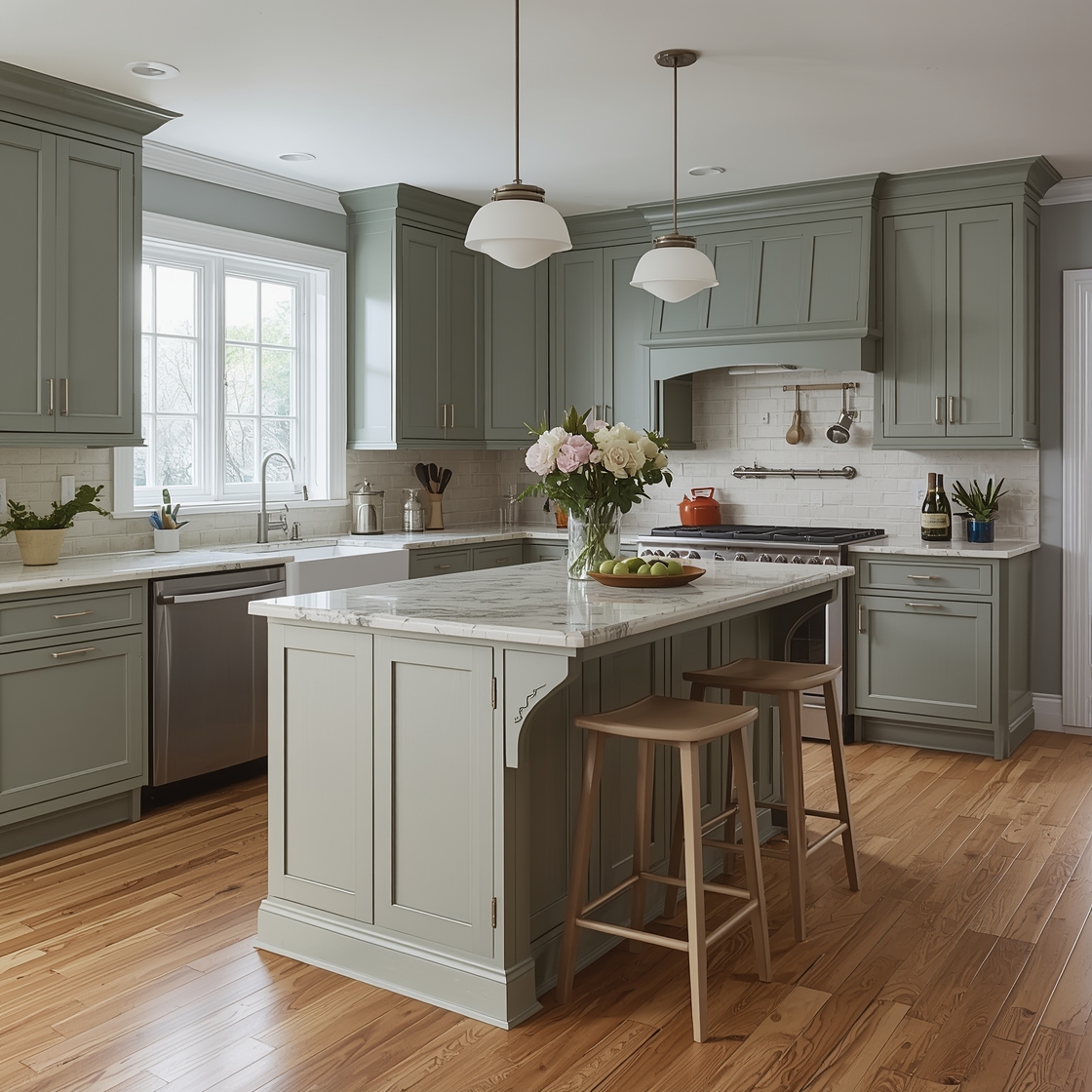 Now, let’s reel it in a little. Sometimes less is more, and that couldn’t be truer than with soft, subtle tones. A pale sage with a creamy white may not sound thrilling to some, but let me tell you, it can make a kitchen feel like a serene oasis.