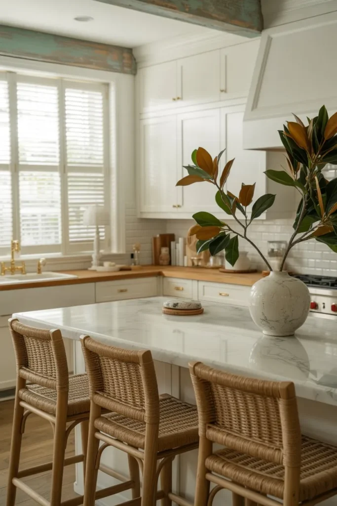 Alright, let’s talk textures. A low country kitchen is all about the warmth of natural materials. Think reclaimed wood, sisal baskets, and stone countertops that make you want to touch them every time you walk by—kind of like your dog (or cat) when they want extra pets.