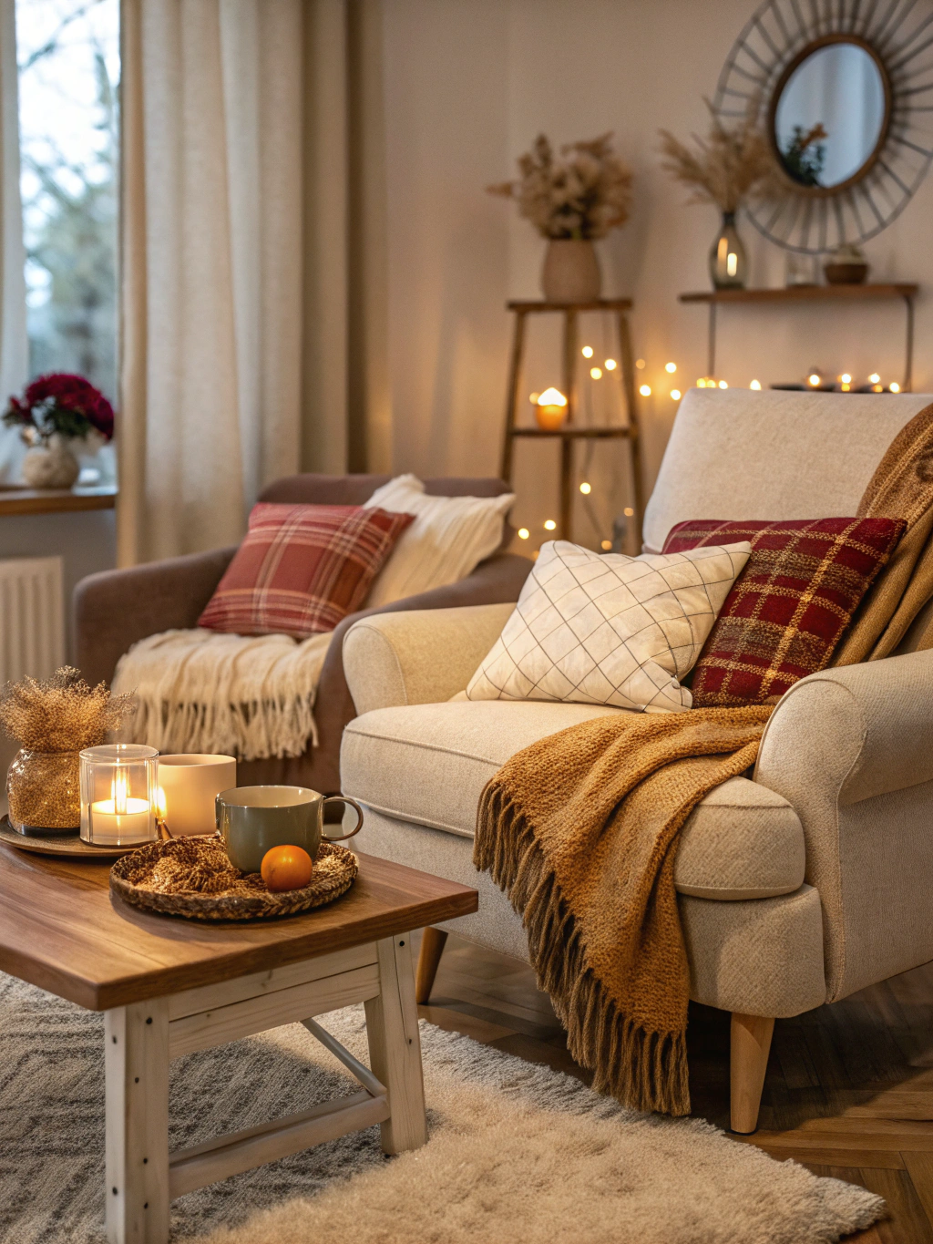 - Textures: Mixing soft fabrics like faux fur with chunky knit throws adds depth and a ‘hug me’ quality to your space.